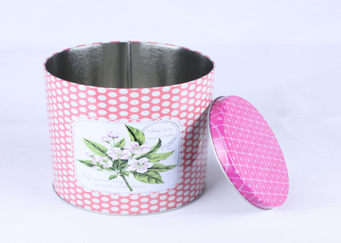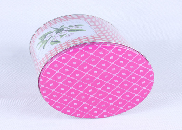 Round Metal Tea Tins CMYK Printed 0.23 MM Recyclable Tinplate With Pink Lid Images |